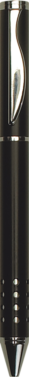 Unique brass barrel cutouts reveal high shine chrome accents. Pen includes premium black ink cartridge.