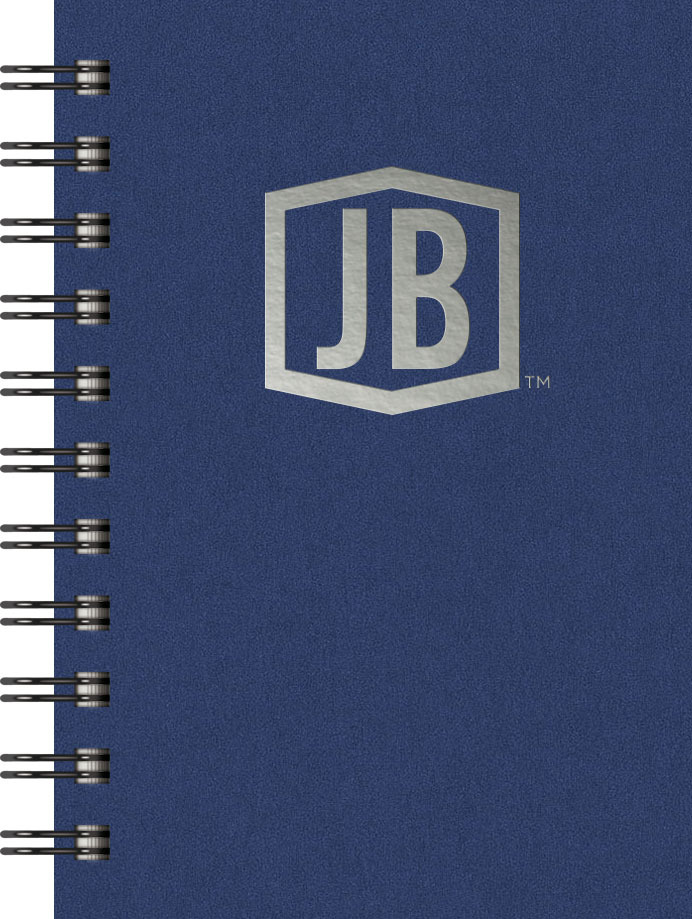 Choose from any materials in Cover Series 2 (Prestige) for front cover with black paperboard back cover. Includes 1-color foil or deboss imprint. 100* sheets of lined filler. Black binding wire is standard (more colors available). Made in USA. *70 sheets of filler available, call factory for pricing.