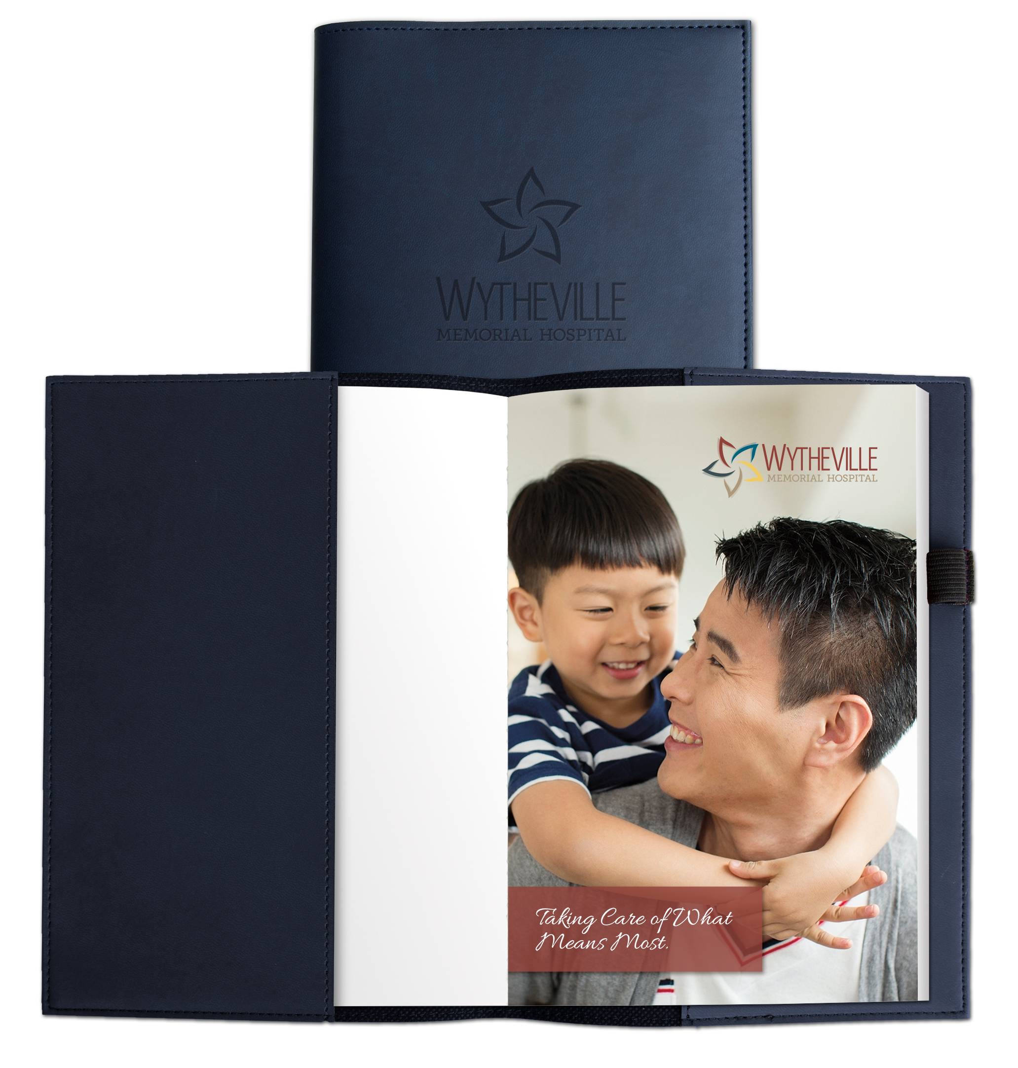 Soft, flexible refillable cover with elastic pen loop and satin ribbon bookmark. Includes blind deboss up to 16 square inches and (1) custom full-color, 1-sided tip-in at front. Refillable journal inside features white flexible paper covers, 80 sheets of lined filler and perfect-bound spine. To purchase refills for this product, please click here. Imported outer shell, decorated in the USA.