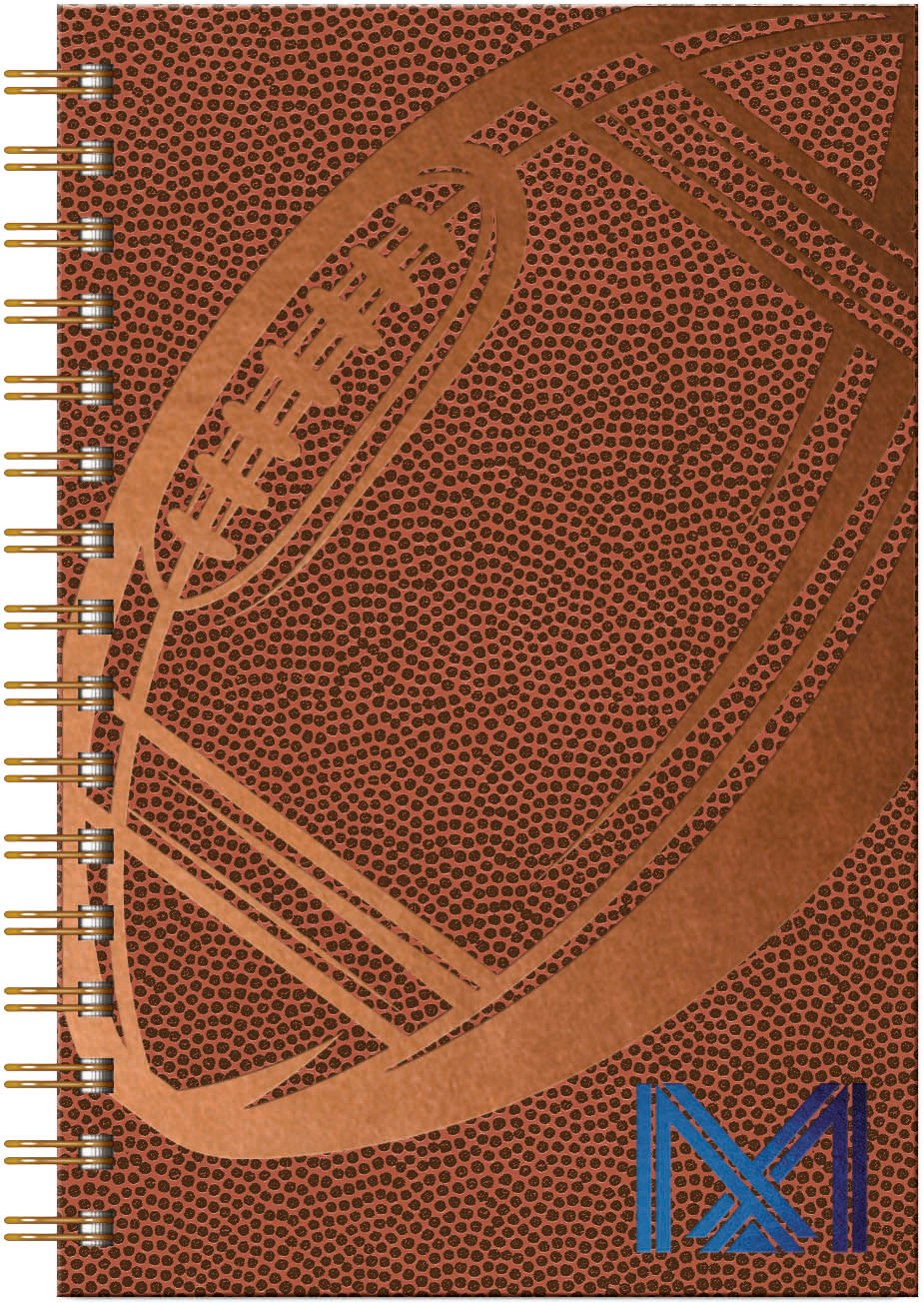 Textured, SportsBook front cover with black paperboard back cover. Includes 1-color foil imprint up to 16 square inches. 100 sheets of lined paper. Black wire binding is standard; also available in white, bronze and pewter.